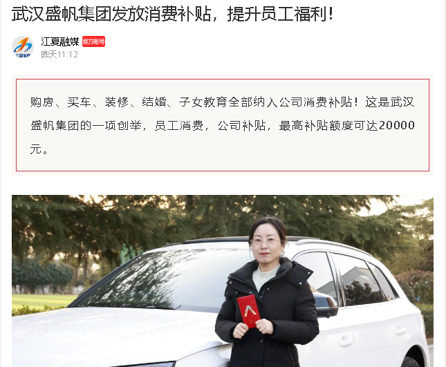 购房、买车、装修、结婚、子女教育全部纳入公司消费补贴!你没有听错,在武汉yl6809永利皇宫集团,员工消费,公司补贴,最高补贴额度可达···