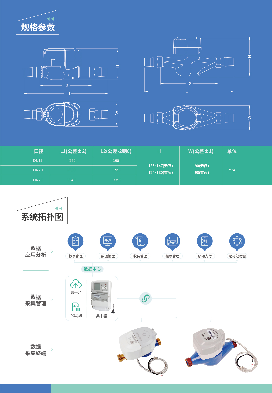 | 工作温度 | 冷水水表:0.1~30℃;热水水表0.1~90℃ |